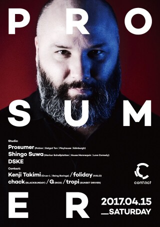 元Panorama BarのレジデントDJ、ProsumerがContactに帰還! 10,000枚を超えるレコードコレクションから厳選したシカゴ、ニューヨーク、デトロイトのクラシックハウスをミックスすることで温もりのある空間を生み出してきた彼は、2012年までレジデントを務めたPanorama Barを中心として世界中のファンを魅了し続けてきた。忘れ去られたディスコの名作を掘り当て、古びることのないハウスクラシックスと滑らかにつなぎ合わせるProsumerのDJセットは、ある種の浄化作用のように聞く者の心を洗い流すエモーションに満ちている。Contactに2度目の出演となる今回は、Prosumerと縁が深く、Motorpoolのレジデントとしてもお馴染みDSKEに加え、10年以上もの間、ベルリンのパーティシーンで活動を続ける生粋の現場型DJであるShingo Suwaも参加。さらに別フロアでは日本発のオルタナティブ・ダンスミュージックを追求してきたKenji Takimiが異なる角度からハウスサウンドを提供する。日々の抑圧や苦しみから何度も音楽に救われたというProsumerを筆頭に、当日はDJたちが多くの笑顔をフロアへもたらしてくれるに違いない。
