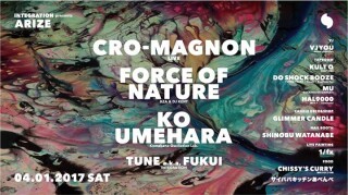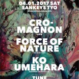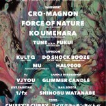 桜満開の気持ち良いこの季節に、まさしく『屋内フェス』とも言えるコンセプトで開催される今回は、ジャンルを軽く超越したgrooveでトリオの可能性を追求しながら野外レイヴからライヴハウス、CLUBイベントに至るまで、ステージの大小を問わず必ずオーディエンスを踊らせてきた“cro-magnon”をGuest Liveとして、さらにGuest DJには、様々なダンスミュージックを自由自在に去来するその唯一無比のDJスタイルで東京を中心に日本全国から、ヨーロッパ・アメリカに至るまで日夜クラウドをロックし続け、アンダーグラウンド・ダンス・ミュージックを独自のスタンスで追求し続けているKZA&DJ KENTによるDJ/プロデュース・ユニット、“FORCE OF NATURE”と、-kikyu-主催の屋内型フェスティバルSYNCHRONICITYのレジデントDJを務めつつ、日本各地様々なクラブ、野外パーティーに出演実績のある“KO UMEHARA”をフィーチュアする。