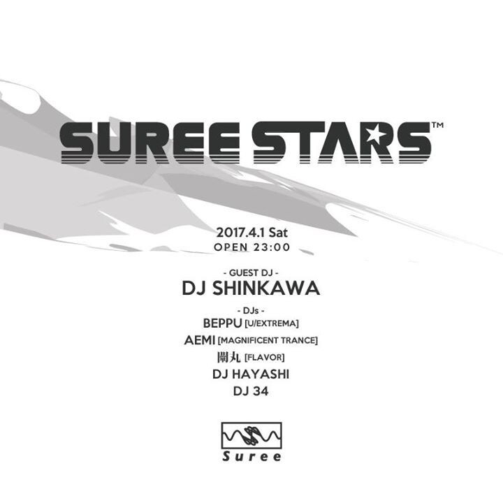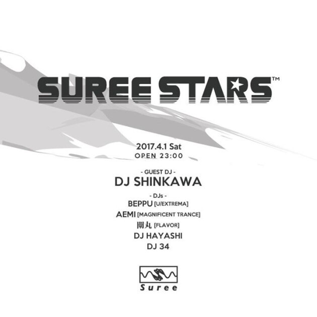 様々なシーンで活躍するDJ陣を迎えてお送りする、毎月第1土曜のレギュラーパーティ”SUREE STARS” 今回はSuree久々登場となるDJ SHINKAWAをゲストに迎え開催!