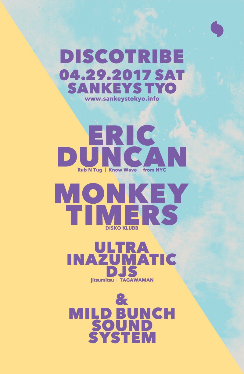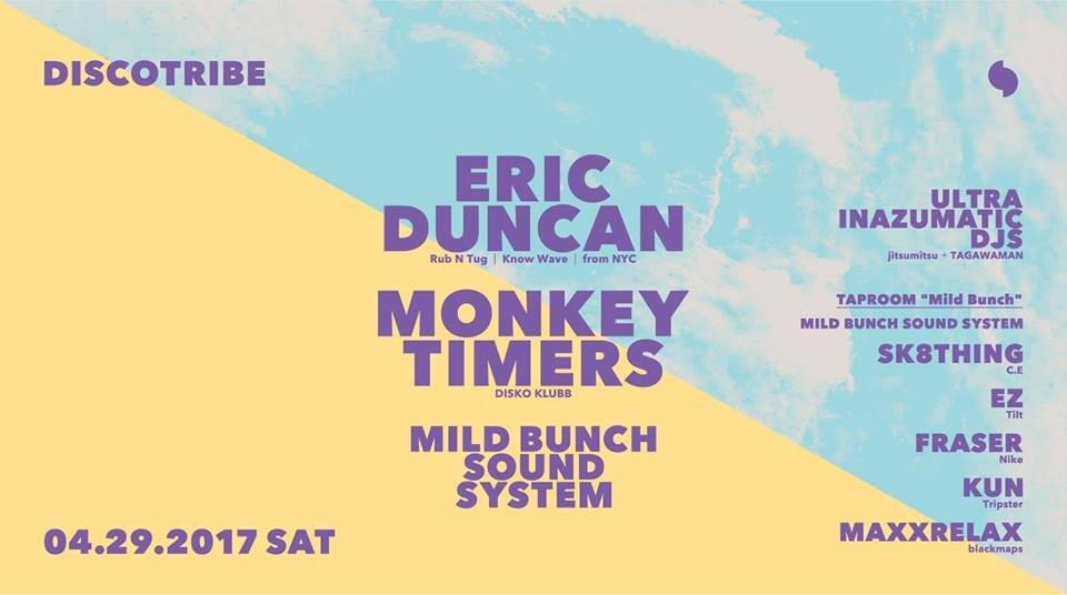 NYCのアンダーグラウンドディスコ〜ハウスシーンにおける最重要人物、Eric Duncan来日決定。共演はMONKEY TIMERS。ラウンジはMild Bunch Sound Systemオーガナイズ