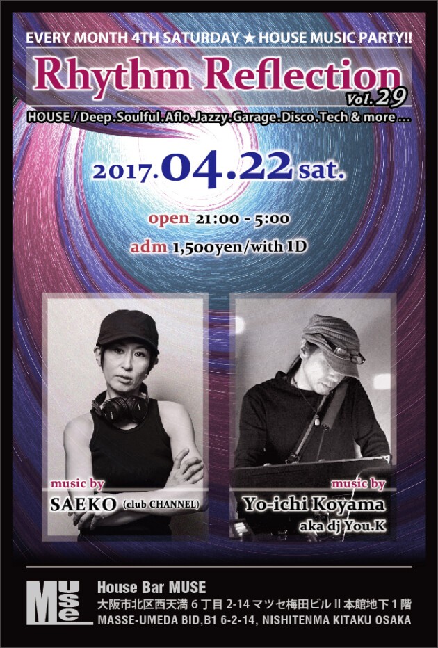 "Rhythm Reflection" is mainly a HOUSE MUSIC party. So come down to feel the natural & warm vibes, and feel good from head to toe!!
