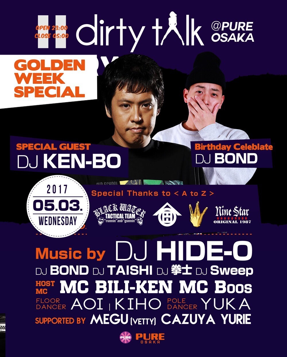 日々アップデートされる、新しい音に新しいダンス。SNS, YouTube, 口コミで広がるムーヴメントがフロアーで体感出来る、流行に敏感な街のポップアイコン達からの評判も高いパーティー。ストリートの流れは水曜日のpureでキャッチせよ