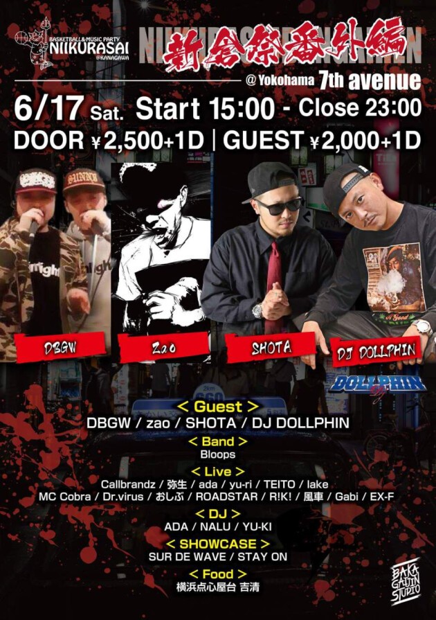 横浜7th avenueで開催中のオールジャンルイベント「新倉祭」が新たに仕掛ける「新倉祭-番外編-」。更なる地域への進出を目論み、ストリートバスケットボールイベント「Hoop In The Hood」の専属DJ「DJ DOLLPHIN」の協力を得て関西×横浜のコラボ企画が実現!