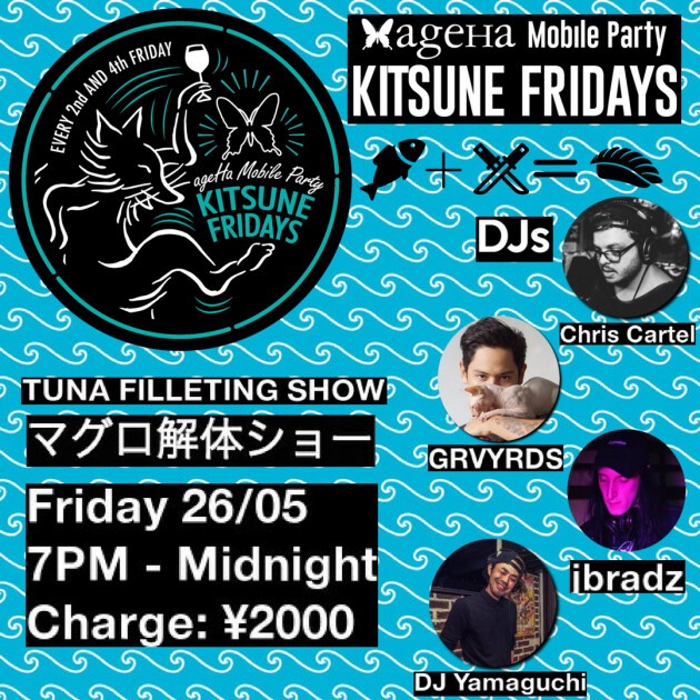 KITSUNE FRIDAYS, the sometimes monthly sometimes fortnightly Friday party hosted at Kitsune in Shibuya and produced by ageHa, is putting together another edition of our hit TUNA FILLETING party!