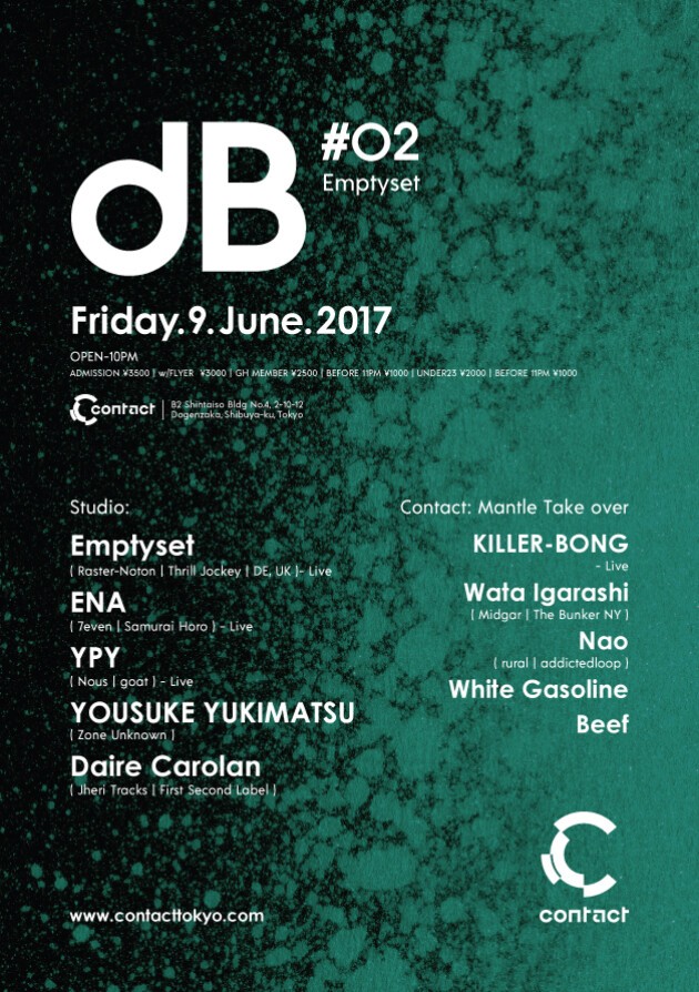 2005年の結成以降、建築とサウンドアートの共通項を模索してきたPaul PurgasとJames GinzburgによるプロジェクトEmptysetがライブを行う。荒々しく猛威を振るうインダストリアルサウンドでオーディエンスを圧倒してきたふたりだが、近年では、テートモダンなどの現代美術館や、廃炉になった原子力発電所などで数々のプロジェクトを手掛け、静寂の持つエネルギーや、実際の楽器と演奏者との関係性に焦点をあてた活動を展開。今年発表された「Borders」では、かつての緻密に作りこまれた複雑なサウンドプロセッシングに代わり、シンプルに物体を叩くことを通じて、実世界に潜むエネルギーをサウンドとして生々しく表出させることに成功している。EmptysetがContactという空間からどのようなサウンドを引き出すのか。周囲の環境と密接に絡み合う極めてスリリングなライブパフォーマンスは必見だ。国内からはENA、YPY、Yosuke Yukimatsu、Killer Bong、Wata Igarashiと実験精神にあふれるラインナップが出揃った。未知なるサウンドの存在に迫る刺激的な一夜に期待が高まる。