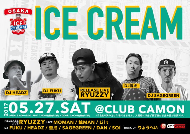 【ICE CREAM】5/27(土)☆DJ FUKUを筆頭にアイスクメンバーによるHIP HOP & FIRST CLASS MUSIC PARTY『ICE CREAM』☆☆RELEASE LIVEにRYUZZYが登場★★