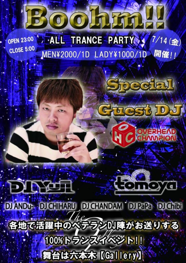 毎月第2金曜日の夜はTRANCE100%のBoohmを要チェック!!!!