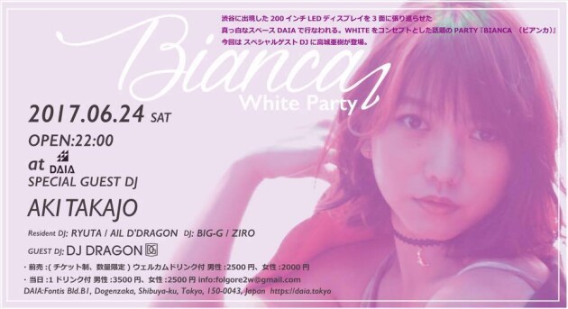 6月24日土曜日、渋谷に出現した、WHITEをコンセプトとした話題のPARTY『BIANCA』