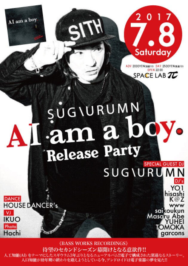 7月8日にSUGIURUMN 「AI am a boy.」Release Partyにて久々のSPACE LAB πに登場!!!今宵は皆様をAIの世界に連れて行きます!!