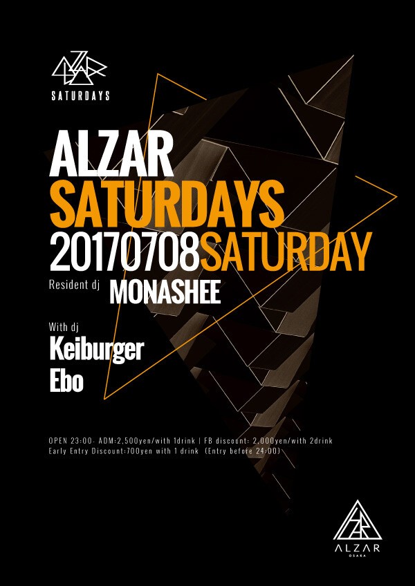 At ALZAR we have a passion for quality music, and so we have picked 5 special DJs from the large pool of DJs based in Osaka to be ALZAR resident artists. Each Saturday will feature one or two of these talented DJs along with special local and international guest artists.