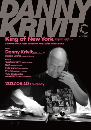 ディープハウスの金字塔的パーティBody & Soulのメンバーとして半世紀近く第一線で活動を続ける生ける伝説Danny KrivitがContactに帰還! Mr. K名義のもと、KraftwerkからBeckまで数々の楽曲をダンスフロア直撃のバージョンにリエディットしてきた彼は、今回の来日公演に合わせて、これまでの名作をまとめたアルバムを発表する。リエディットのセンスと手腕に定評のあるDanny Krivitだけに、今回のDJセットでもどんな秘密兵器を炸裂させるのか、期待は高まるばかりだ。これまでに何度もDanny Krivitと共演し、先日、ヨーロッパ公演を終えたばかりのNagiとKei Suganoによるユニット Dazzle Drumsが参加するほか、火曜の夜を盛り上げ続けるCaptain Vinlyから、国内屈指のレコードディガーDJ NoriとMuroのふたりがマニア垂涎の隠れた名作7インチを膨大なコレクションから厳選してプレイ! ときに切なく、高らかに情熱的なハウスミュージックはもちろん、ジャンルのへだたりを超えたあらゆる音楽が極上の空間を作り上げるに違いない!