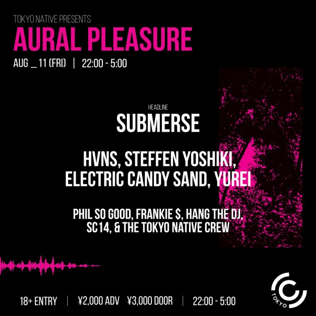 今回のゲストは東京を拠点に置く英国人天才DJ/プロデューサー/ビートメーカーSubmerse。2014年<Project: Mooncircle>と<flau>よりリリースしたデビューアルバム「Slow Waves」が絶賛を呼び、また今年9月に待望のニューアルバム「Are You Anywhere」をリリースする予定。そしてSubmerseに続き、国内や海外から注目されているdos・ingのHVNS、Steffen Yoshiki、Electric Candy Sandや福岡を拠点に音楽活動するアメリカンDJ/プロデューサーyureiを迎える。