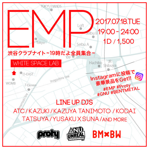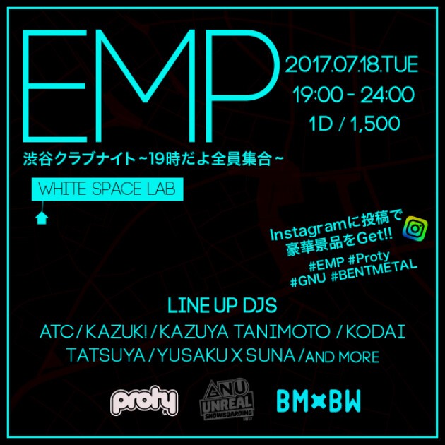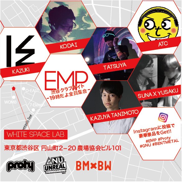 土日のゴチャゴチャした感じではなく、アットホームに友達や仲間とゆっくり音とお酒を楽しめる、そんな大人な空間を提供します。 DJも豪華に勢ぞろいしてくれたので、お仕事帰りにアフターナイトしに来てください♫ EMP(East Meets PROTY) 渋谷クラブNight ~