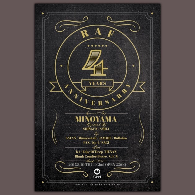 DJ SHINIGEN & DJ SMILY PRESENTS『RAF』!!ついに4周年!!