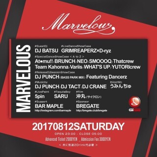 【Marvelous】8/12(土)☆GUEST DJにDJ BATSU、LIVE DANCE SHOWCASEにGRIMREAPERZ×D-ryz、RELEASE DJ SESSION SHOWCASEにDJ PUNCH (BASS PARK MIX) feat. DANCERZが登場☆☆さらにSPECIAL DANCE SHOWCASEにダンサー多数出演★★