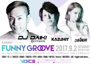 2017年の夏を締めくくるビックイベント"FUNNY GROOVE"が北関東最大級のCLUB VOICEで開催!