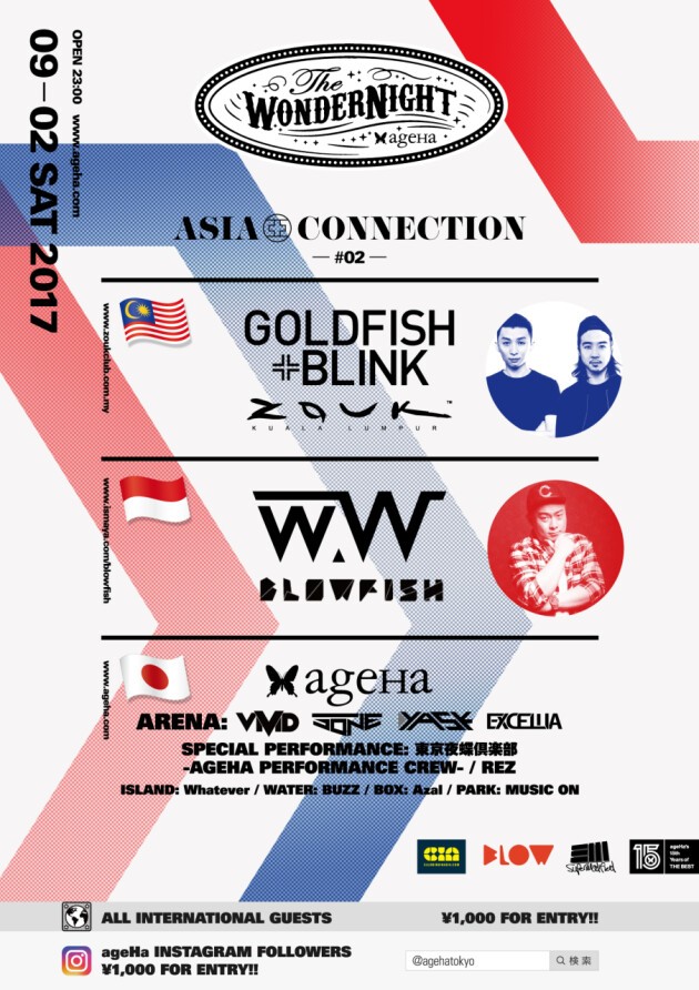 ageHaとアジアをつなぐ企画の第二弾。6月に続く2回目の今回は、世界最高のクラブの一つとして名高いZOUKグループのクアラルンプール(KL)そして、ジャカルタのBLOWFISHという2大東南アジアクラブとコラボ!