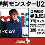 18歳~22歳のお客様限定で、Twitter・facebookでBAMBI公式Twitterの「平日1,000人で盛り上がる #モンスタークラブ」という投稿をリツイートor シェアすると入場料無料!