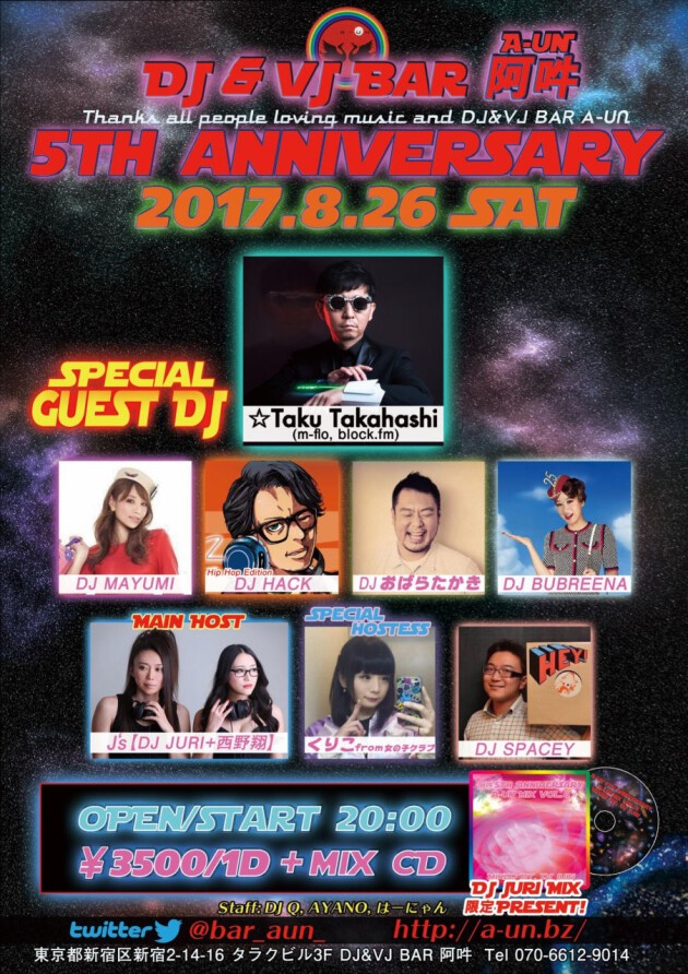 8/26 (Sat.) DJ & VJ BAR 阿吽 5TH ANNIVERSARY