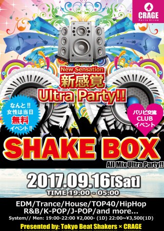 東京・神奈川を拠点に展開する話題のイベント『SHAKE BOX』が3周年パーティーを盛大に開催します❗❗❗ 今回は、町田の超大型最新CLUB『CRAGE』との夢のコラボレーション