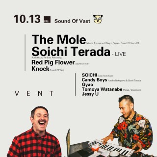 Sound of Vast, based in Europe and ran by a Japanese, is responsible for many brilliant releases, and VENT is proud to be hosting their second label showcase! The Mole has really made a name for himself as a top producer, releasing works on Perlon and Ostgut Ton, and he'll be making his first trip back to Japan in two years with his new release "Potatoes and Beans EP" in tow. Also making his first ever appearance at VENT will be the ever popular Soichi Terada, who's recently remixed a track on The People in the Fog's the "Higher EP" - he's well known for bringing a flood of smiles on dance floor across the globe.