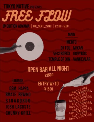 Tokyo Native presents: Free Flow. Start off the weekend right with great music and free flowing alcohol, all night long! 7 hours of open bar