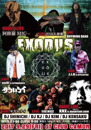 【EXODUS vol.3】9/29(金)☆第5金曜開催『EXODUS』の第3弾★★GUEST LIVEに阿修羅MIC、KNX from MAGNITUDE CREWが登場☆☆HIP HOPアーティスト多数登場★★
