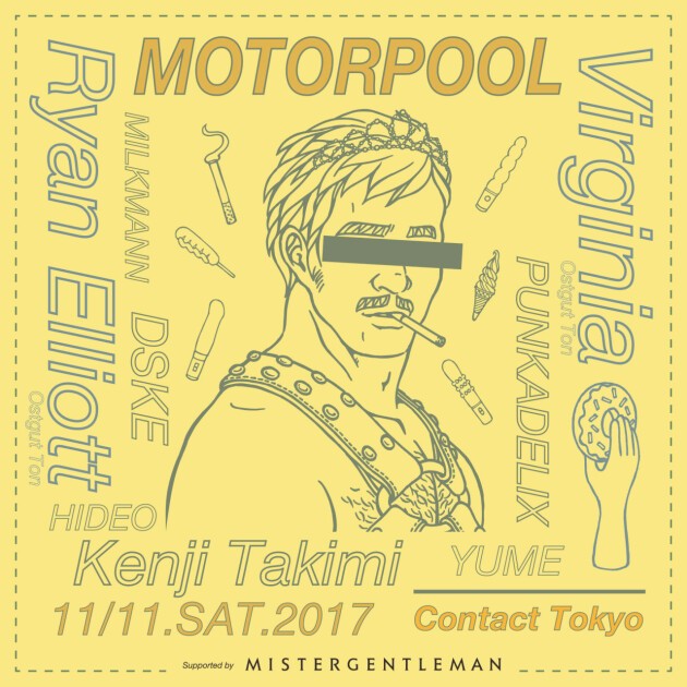 DSKE's resident party MOTORPOOL. For this occasion, they've invited 2 guests from Berlin. In 2009, Ryan Elliott made his move from Detroit to Berlin, and worked his way into Ostgut Ton agency run by Berghain/Panorama Bar. He has also released a mix CD for London's Fabric. Virginia, from the same Ostgut Ton family who has just released her 1st album last year, will join the decks in the main stage. Contact floor will be navigated by Crue-L's Kenji Takimi, Punkadelix, Yuya Nara who is a hair-stylist, and stylist Tessan. Colorful line up curated by MOTORPOOL.