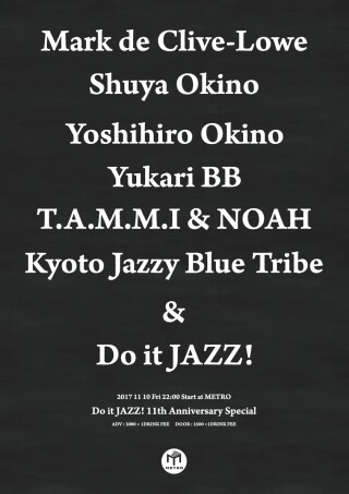 2006 年 に始動以降COLLAGEそしてMETROへと場所を 変え、クラブ以外でも屋上のルーフトップやカフェ・バー、ラウンジ、ショップレセプション、 国際写真展とのコラボレーション等活動を広げ、日本、世界の著名DJを招待し、京都のJAZZ/CROSSOVERミュージックを発信し続けてきた、"DoitJAZZ!"、今回で11周年を迎えます。今まで色々な方々にサポートして頂きここまで来れました。そして僕たちは世界の素晴らしいアーティストの素晴らしいプレイ、僕たちの大好きな音楽をレコードを通じて感謝の意をお返ししたいと思います。