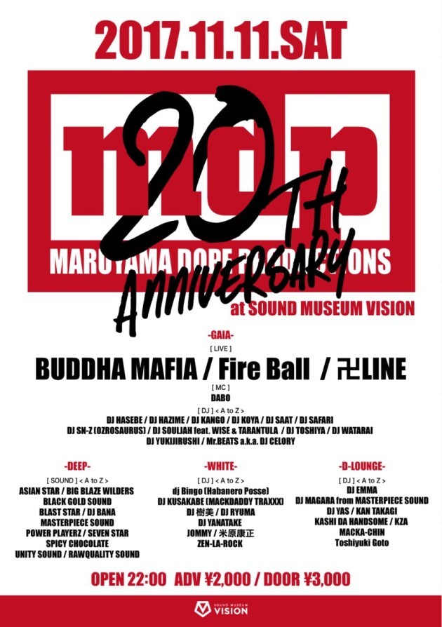 1997年に渋谷円山町で発足したmdp(マルヤマドーププロダクションズ)。HIP HOP、REGGAEをメインに新木場ageHa、渋谷HARLEM、青山オービエントなどで人気パーティーを開催し、クラブシーンを牽引してきた。そのmdpが今年で20周年を迎える。20周年パーティーには、縁の深いアーティスト、DJ、セレクター40組近くが出演。mdpのお膝元、渋谷での大宴会の一夜となる。
