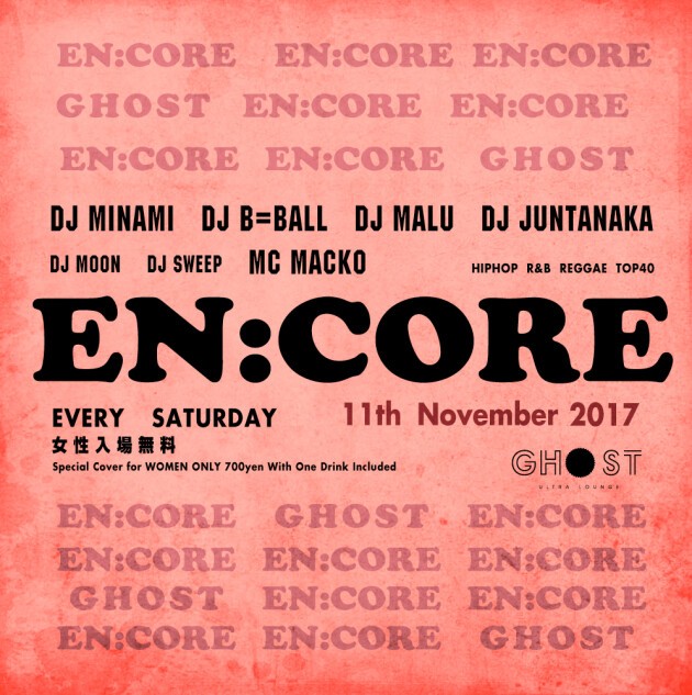2017年現在も常時600人を超える集客で賑わう毎週土曜日、Ghost ultra loungeの看板イベント「EN:CORE」(エンコア)!