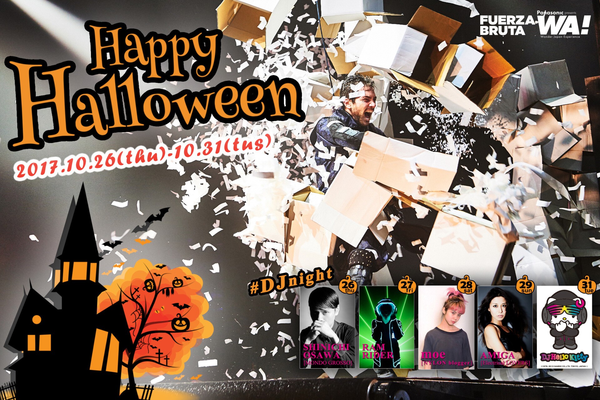 ニューヨークやブエノスアイレスのフエルサブルータ公演では、すでに定番になっている『フエルサブルータ DJナイト』が、このハロウィンに日本初開催となります。