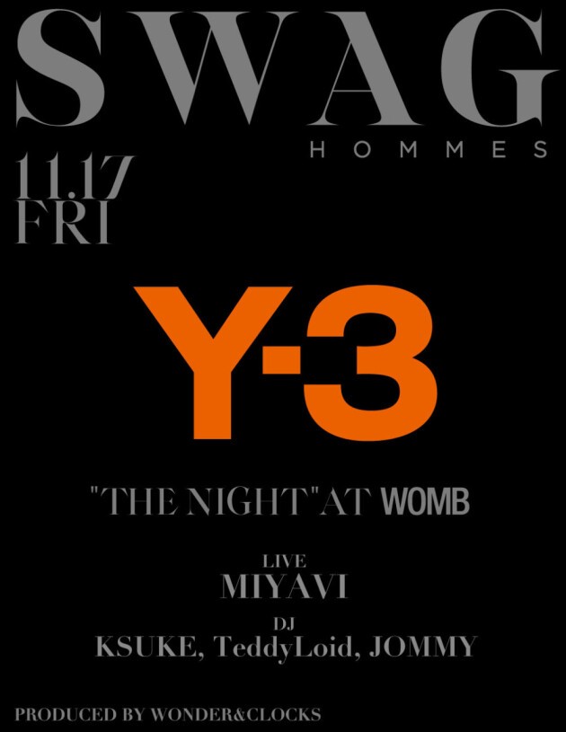 「SWAG HOMMES」×「Y-3」のプレミアムナイトに、MIYAVIやKSUKEなどが出演!来場者には「Y-3」ポーチを限定プレゼント!!