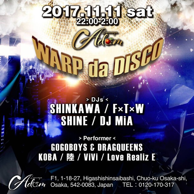 DJ SHINKAWAによるparty「 WARP da DISCO」を大阪 Adam Loungeにて開催!!