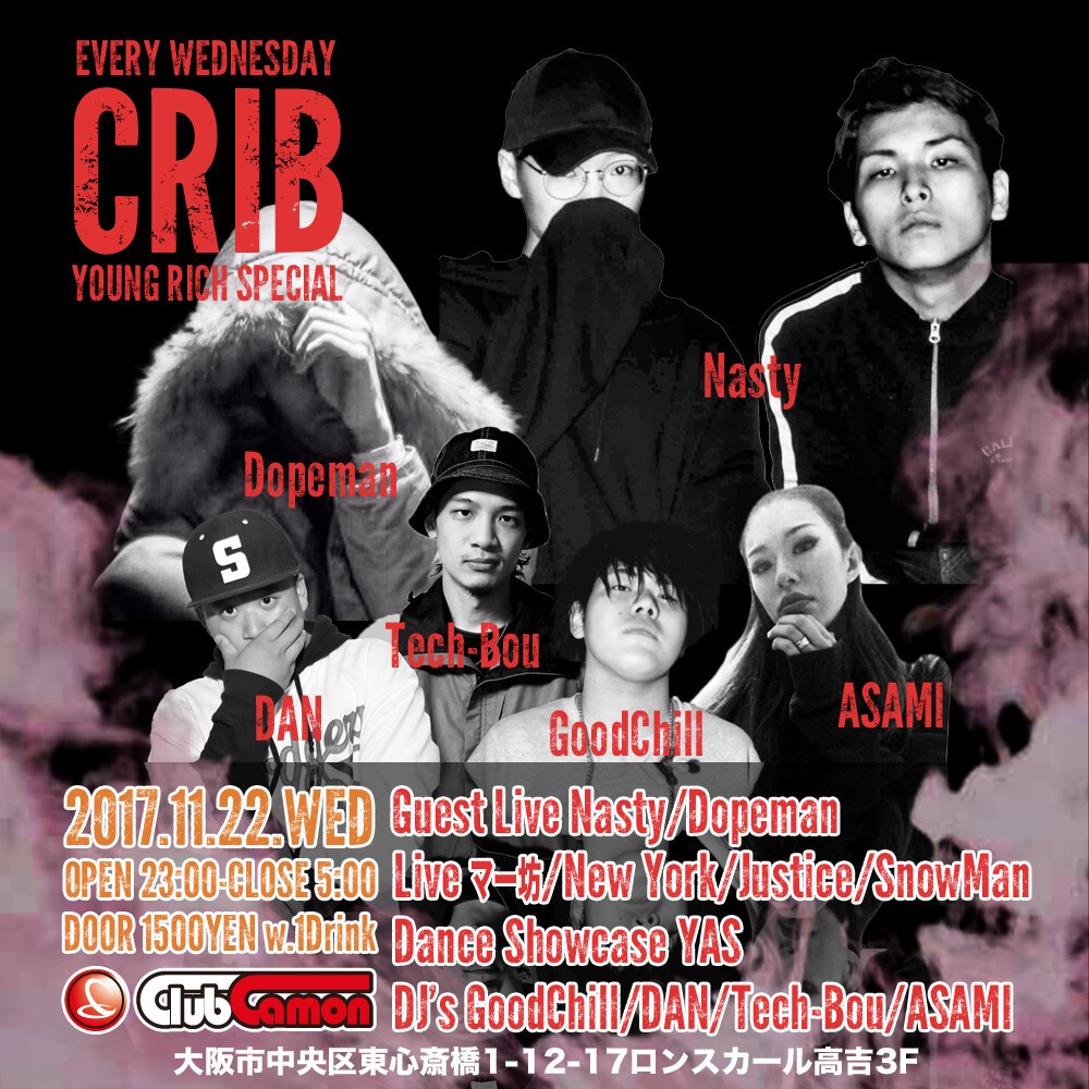 【毎週水曜CRIB】11/22(水)(祝前日)☆EVERY WEDNESDAY HIP HOP NIGHT『CRIB』☆☆次世代を担うDJによるBLACK MUSIC PARTY★★GUEST LIVEにNASTY (じょう&ゆの)、DOPEMANが登場☆☆次世代のHIP HOP ARTISTが多数出演★★