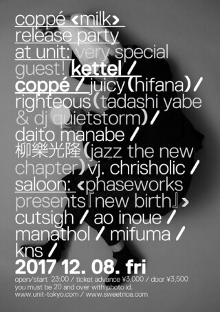 Atom™、kettel、Nikakoiら豪華アーティストが参加したcoppéの最新作『milk』のリリース・パーティーが、12/2(土曜)京都UrBANGUILD、12/8(金曜)代官山UNIT/SALOONで開催!