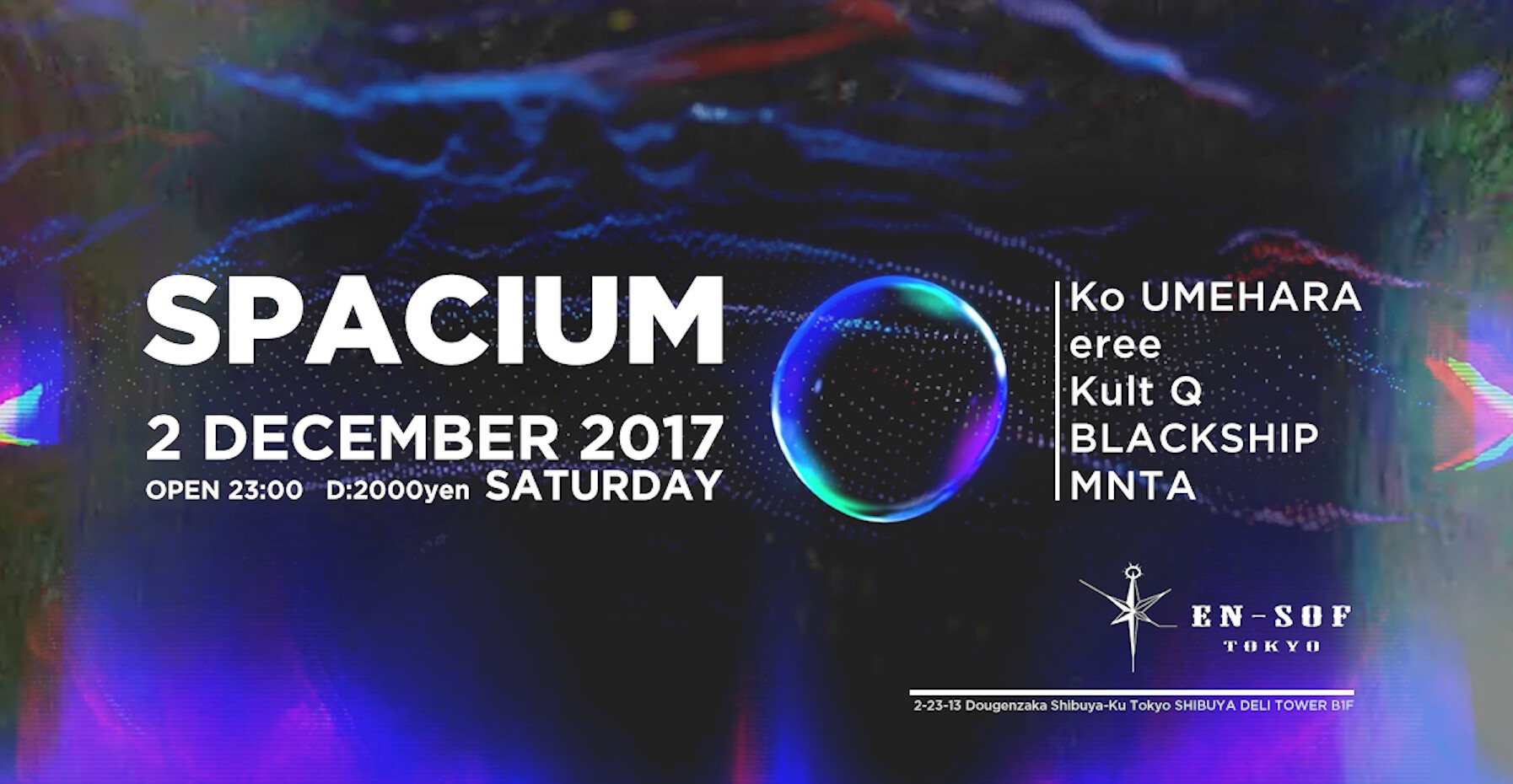 神出鬼没の如くBLACKSHIPとKULT Qがタッグを組んだ、新感覚のシナジーが満載されたNew Party【SPACIUM】を、都内屈指のサウンドシステムを装備している渋谷のEN-SOF TOKYOにてローンチ!!