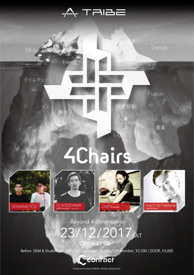 4組のアーティストがStudio・Contact両方でプレイをし夜を堪能できる新パーティ”Tribe -4Chairs-”