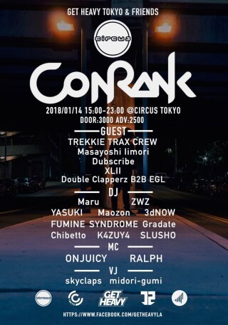 ”Get Heavy Tokyo & Friends”と題して、ゲストにはCIRCUS RECORDS所属、今一番勢いのあるプロデューサーの一人として欧米だけでなくOWSLA主催の “Boiler Room-Asia”出演などでアジアでもその名を轟かすConrankが登場!!