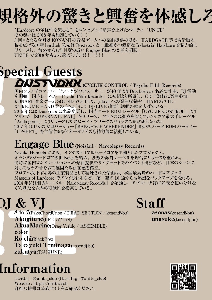 “Hardcoreの多様性を楽しむ”をコンセプトに産声を上げたパーティ“UN!TE”