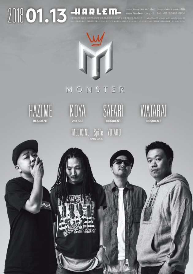 日本のHIP HOP SCENEを代表するDJが一堂に介する土曜日"MONSTER"。