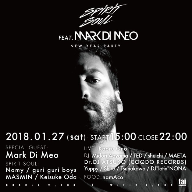 2018年最初のパーティーは、Spirit Soulの最新作、Yuichi Inoue - There is a Miracle feat.MASMINのRemixも手がけLouie Vegaからの信頼も厚いイタリア人プロデューサー / DJのMark Di Meoが初来日!