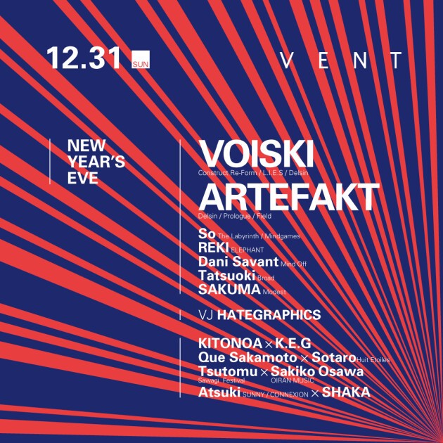 1年を締めくくる恒例のカウントダウンイベントが今年も開催!昨年はScubaを迎えて大好評のうちに新年を迎えたが、今年はさらにパワーアップ!もはや絶対的な地位を確立した異端児” Voiski "と、Donato Dozzy辺りが好きな人は確実に抑えておいて欲しい新進気鋭のニュースクールテクノ代表” Artefakt "が揃って登場するVENTならではの至極のカウントダウン!!