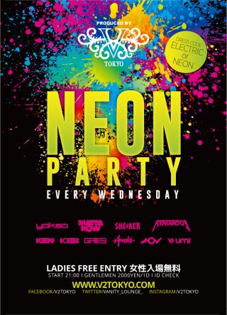 ☆★毎週水曜日のV² TOKYOは大好評の『NEON PARTY』を開催!★☆
