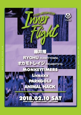 ROCK~POPS~TECHNO~HOUSE~ELECTRONICA~HIPHOP~BASS~といった様々な音楽の形態を一夜に詰め込み、4フロアで展開していくパーティー「slow dance」がグレードアップし「Inner Flight」となりリニューアルスタート!