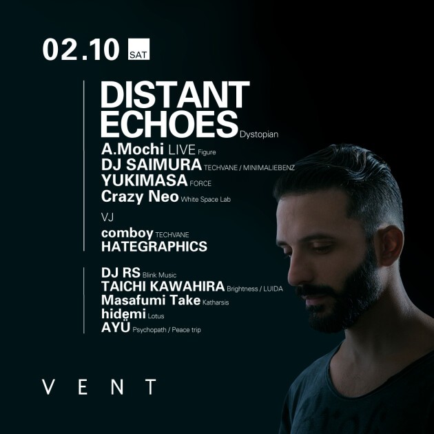 ハードなリズムとメランコリックなメロディー、催眠術的なパターンと強烈なグルーヴが生み出すダークだがどこか温かみのある音空間。90年代のミニマルサウンドをモダンなスタイルでアップデートしてきたような、新時代のミニマルサウンドがヨーロッパを超えて各地で話題になっているDistant Echoes。東京屈指のサウンドクオリティを誇るVENTで繰り広げられるディストピアな音楽空間を体験しに来て欲しい!