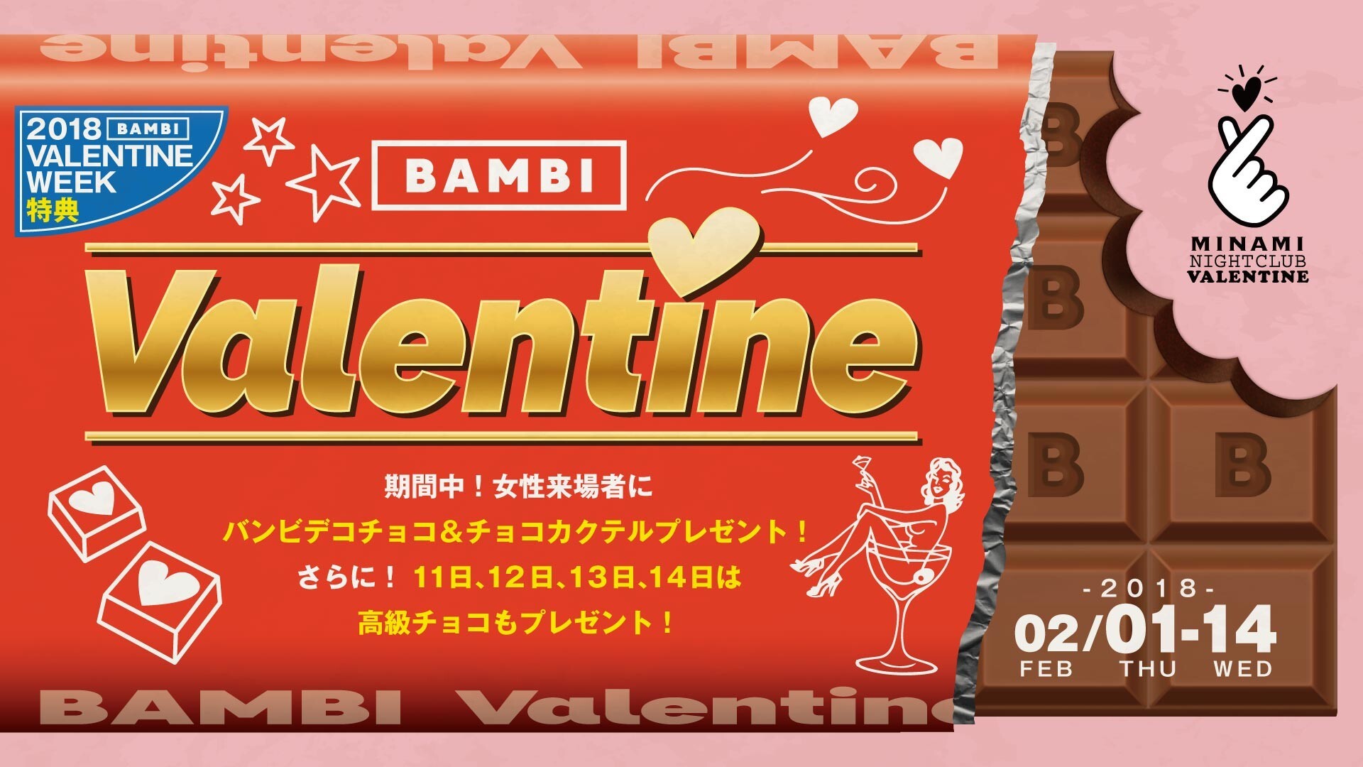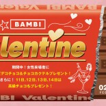 2月1日〜2月14日は「BAMBI VALENTINE」を開催!期間中、女性の来場者にはバレンタイン特典として「バンビデコチョコ」&「チョコカクテル」をプレゼント♪