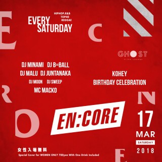 2017年現在も常時600人を超える集客で賑わう毎週土曜日、Ghost ultra loungeの看板イベント「EN:CORE」(エンコア)!