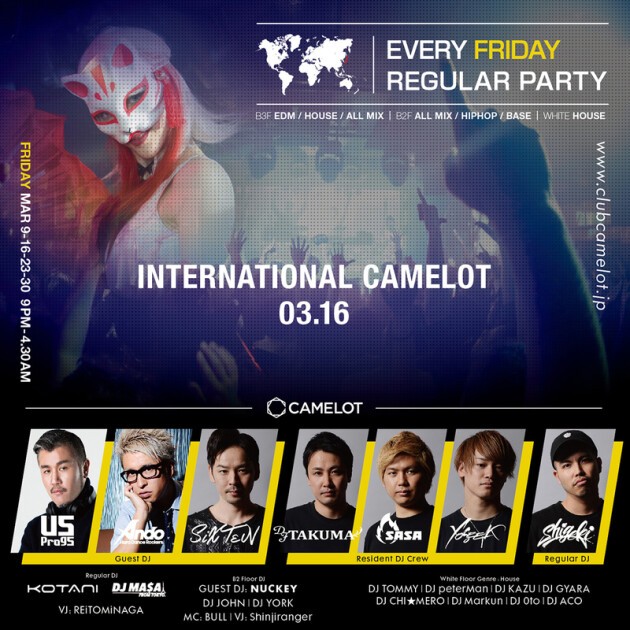 ※CLUB camelot will conduct ID check on all visitors. A photo ID with age verification is required at entrance.
