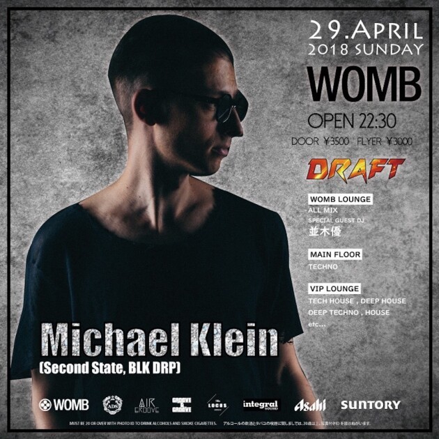 True to its name, we've mainly drafted active DJs who even work on their own parties! A variety of DJs will come together in Shibuya WOMB!! The MAIN FLOOR will see Berlin-based Michael Klein (Second State, BLK DROP), who plays around the world!! His DJ SET excels at groovy and underground sounds. He joined Pan-Pot's label Second State in 2015 and has released a number of EPs, and is the leading artist of the label. Recently, he performs at many events such as HYTE Amsterdam, The Hydra London, Krysha Mira Moscow, Labyrinth Hasselt, and Watergate Berlin. In 2016, he launched his own label BLK DRP that focuses on underground sounds. He also released his first EP, which he produced with Amelie Lens, Eduardo de la Calle, Raiz and TWR72. Don't miss this increasingly exciting artist play!